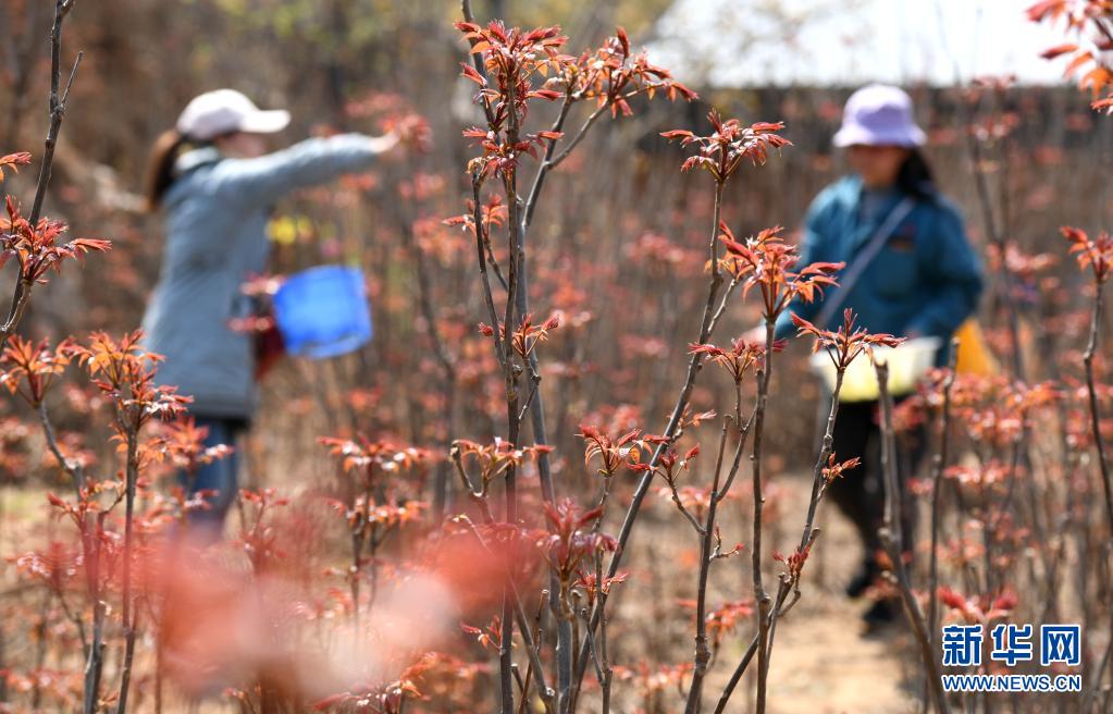 4月6日,農民在石家莊市鹿泉區白鹿泉鄉谷家峪村采摘香椿。