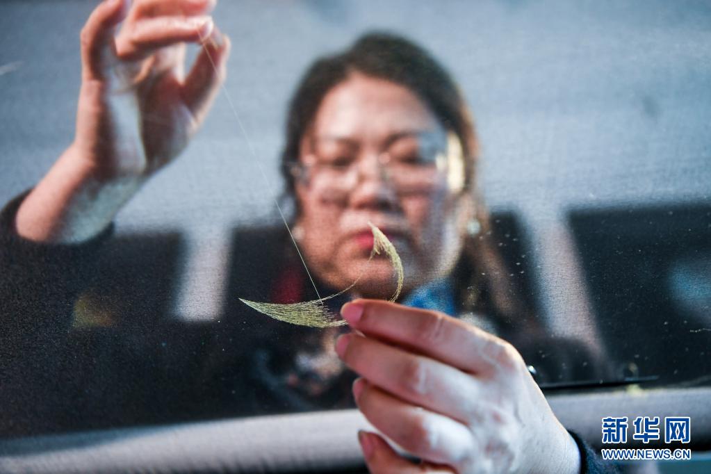 陳英華在位于蘇州高新區鎮湖街道的蘇繡工作室內刺繡(4月14日攝)。新華社記者 李博 攝