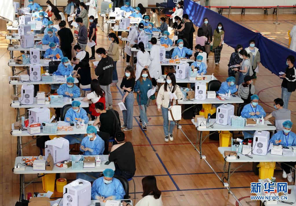 2021年3月28日,在華東師范大學閔行校區(qū)體育館內(nèi),師生們在接種新冠疫苗。新華社記者 劉穎 攝