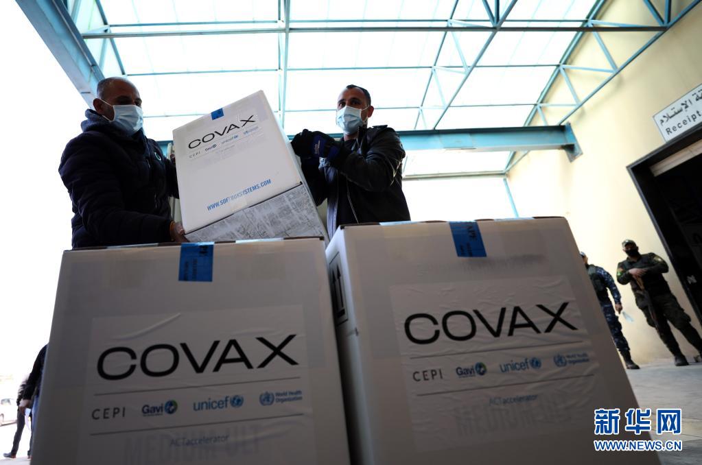 3月17日,在約旦河西岸城市納布盧斯附近的薩利姆鎮(zhèn),巴勒斯坦工作人員搬運通過世界衛(wèi)生組織主導的“新冠肺炎疫苗實施計劃(COVAX)”收到的新冠疫苗。新華社發(fā)(艾曼·諾巴尼攝)