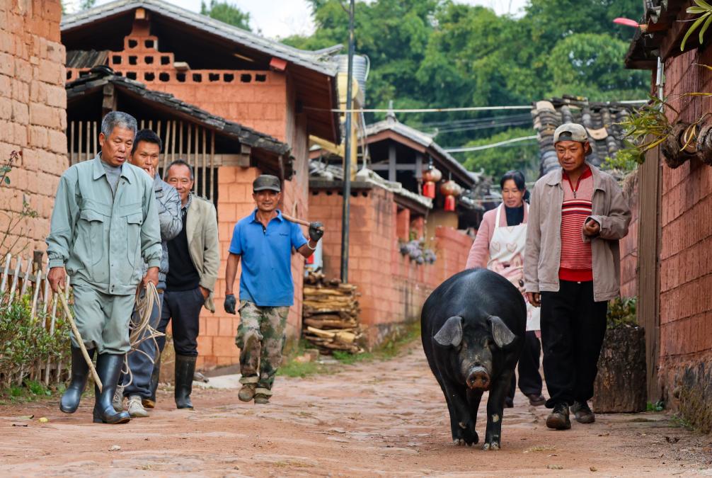 “年猪叫,年快到。”在云南,年味往往从一顿杀猪饭开始。临近春节,普洱市宁洱县磨黑镇孔雀坪村逐渐热闹起来。