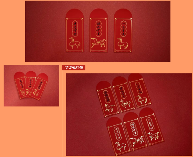 红包上的马纹,源自《中国纹样全集》战国·秦·汉卷中收录的汉代画像砖马纹(河南洛阳出土),配上“马到成功”“骐骥载福”“一马当先”等六组吉祥贺词,让您的压岁钱不仅是一份心意,更是一份汉代的文化祝福与美好寓意。