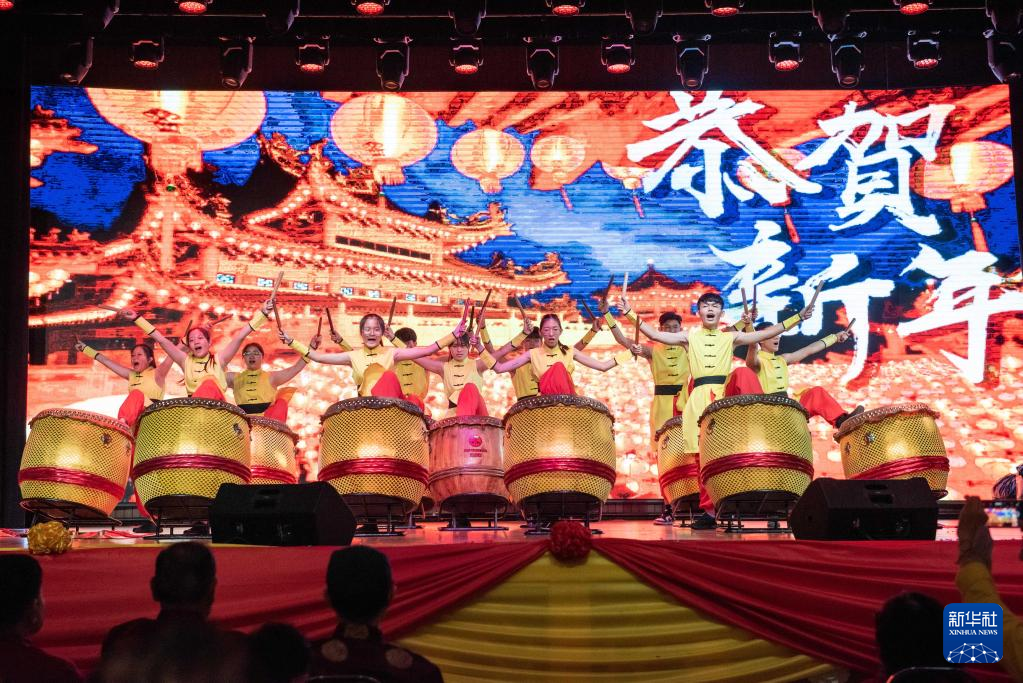 这是2月5日在马来西亚吉隆坡拍摄的击鼓表演。