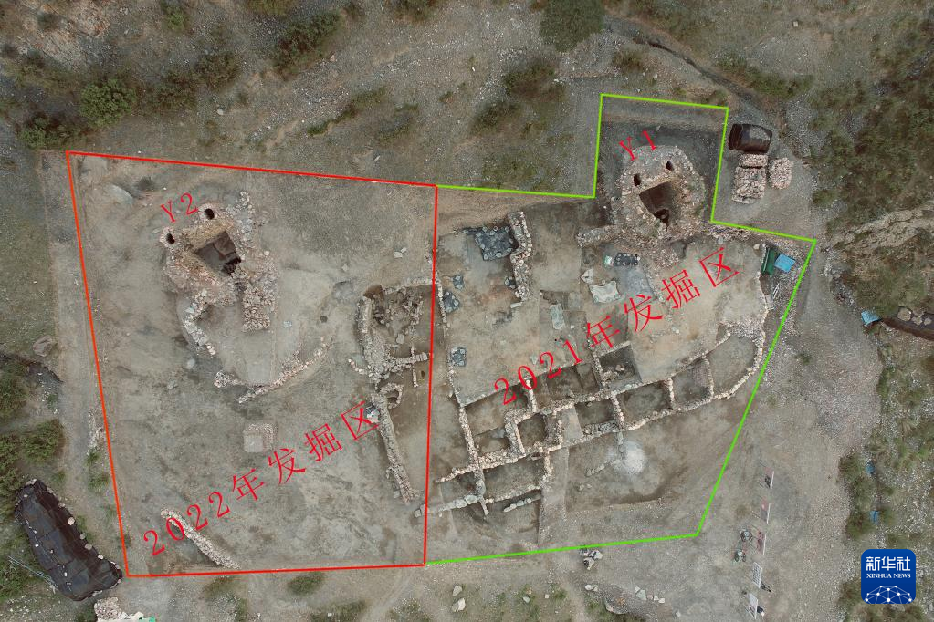 宁夏贺兰苏峪口瓷窑遗址2021年和2022年发掘区航拍图(资料照片)。
