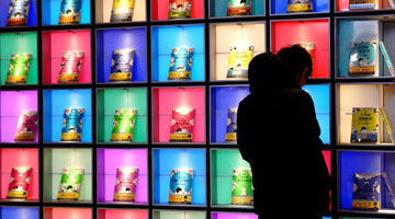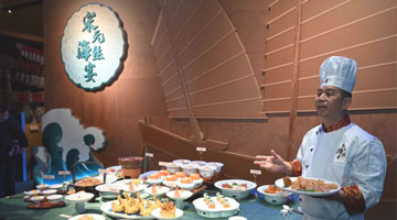 2月21日,在天津市水上公园,民间艺人表演汉沽飞镲。