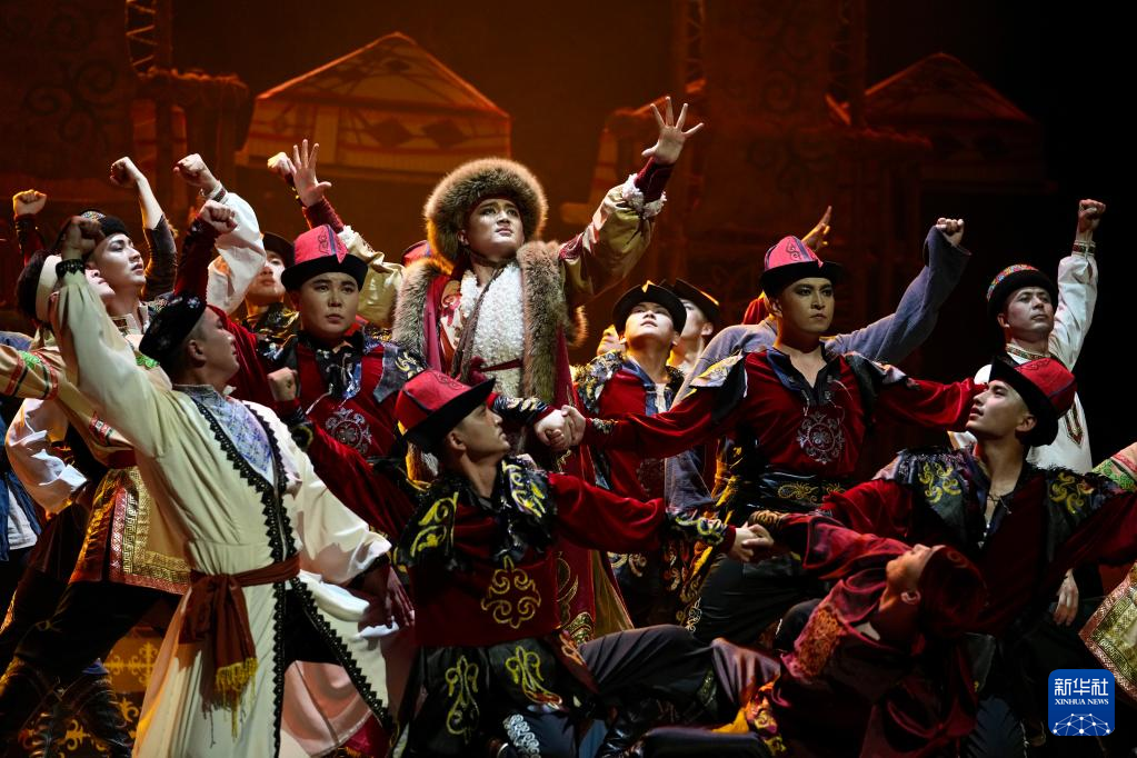 当日,2023年“全国民族地区艺术院团晋京展演”拉开大幕,原创歌舞剧《玛纳斯》在北京民族剧院上演,《玛纳斯》是柯尔克孜族英雄史诗。