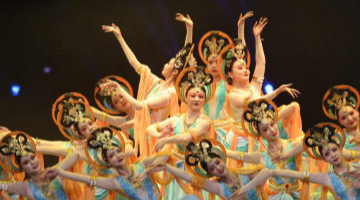甘肃省酒泉市文化馆的演员在甘肃省群众文艺展演展播活动首场演出中表演敦煌舞(1月7日摄)。