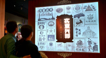 人们在哈尔滨市兆麟公园举办的第52届哈尔滨冰灯艺术游园会上参观(1月14日摄)。