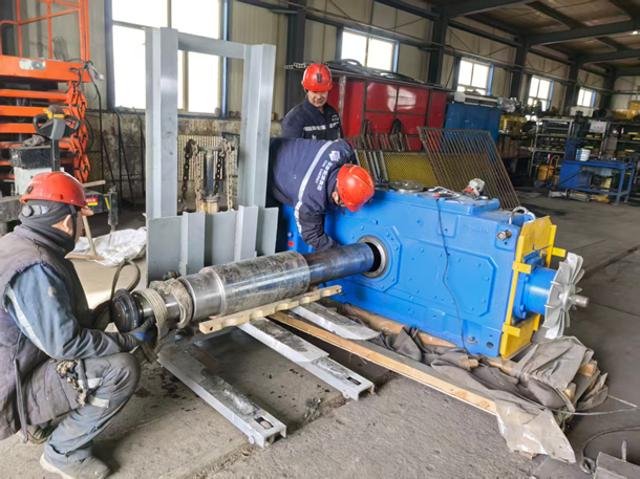 图为职工维修架空乘人装置减速器