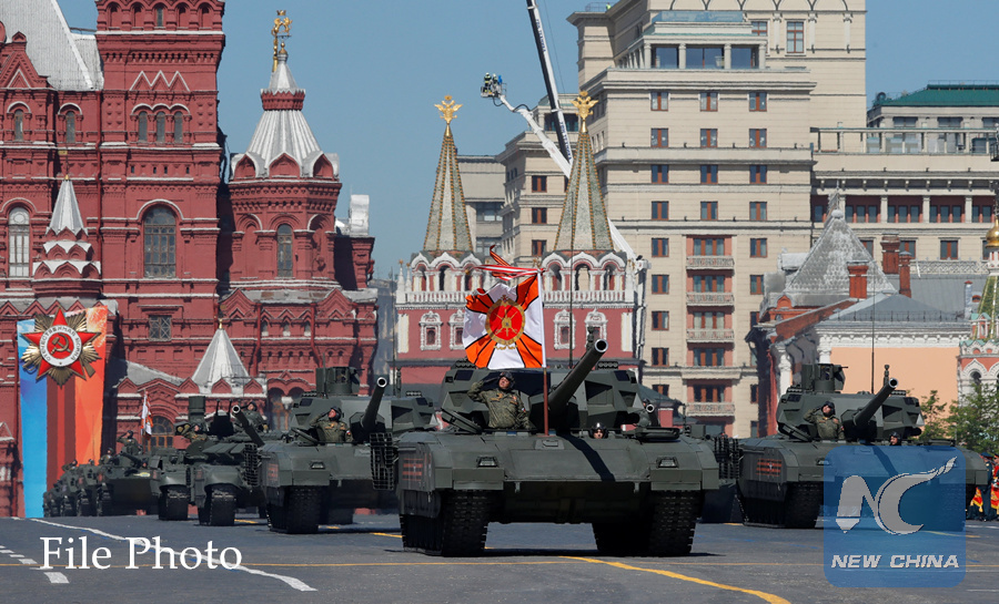 In this file photo taken on May 09, 2018, Russia's armored vehicles ride through the Red Square during the Victory Day military parade in Moscow, Russia. (Xinhua/Reuters)