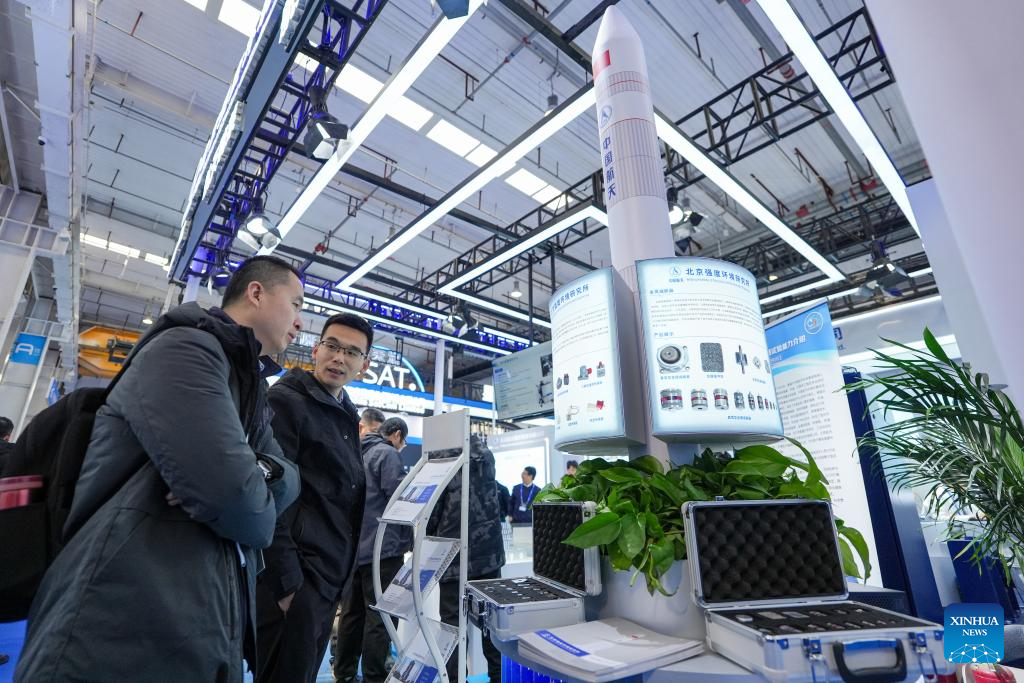 People visit the booth of Beijing Institute of Structure and Environment Engineering at the 2026 Beijing International Commercial Space Exhibition in Beijing, capital of China, Jan. 23, 2026. The exhibition kicked off here on Friday. (Xinhua/Ju Huanzong)
