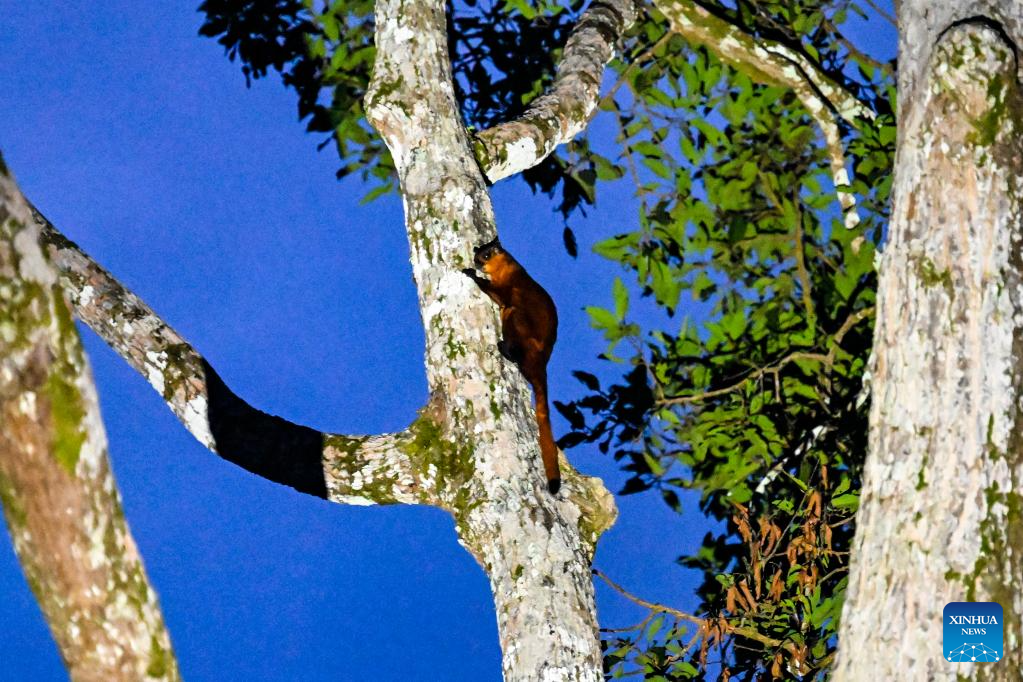 This photo taken on Jan. 20, 2026 shows a red giant flying squirrel (Petaurista petaurista) in Sandakan, Malaysia. (Xinhua/Cheng Yiheng)