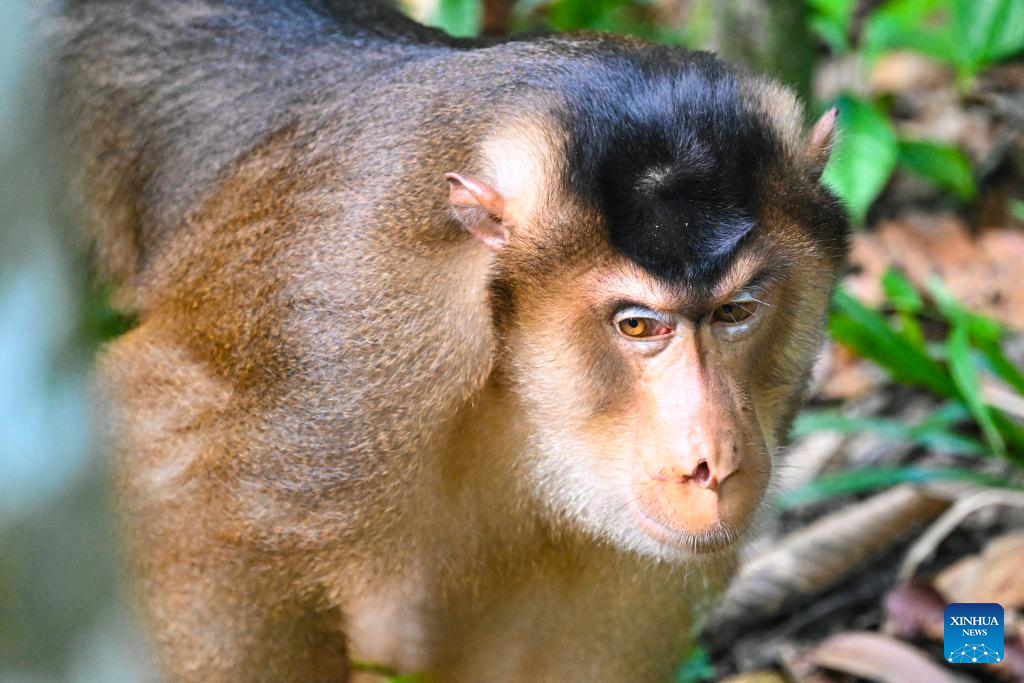 This photo taken on Jan. 19, 2026 shows a crab-eating macaque (Macaca fascicularis) in Sandakan, Malaysia. (Xinhua/Cheng Yiheng)
