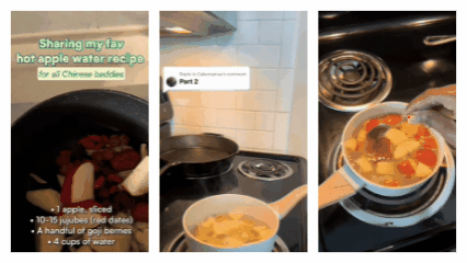 This compilation GIF shows global netizens preparing specialty soups guided by TCM. (Composite from TikTok users)