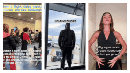 This compilation GIF shows global netizens practicing Baduanjin and Qigong. (Composite from TikTok users)