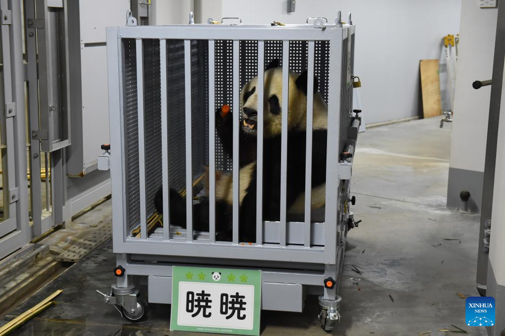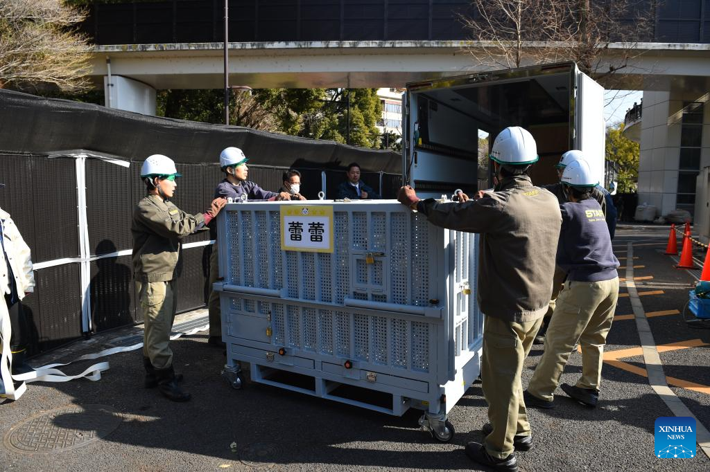 Staff members transfer the logistics crate carrying giant panda Xiao Xiao at the Ueno Zoological Gardens in Tokyo, Japan, Jan. 27, 2026. The last remaining two giant pandas in Japan on Tuesday left Tokyo's Ueno zoo for their return to China, marking the first time that there will be no pandas in Japan in around half a century.