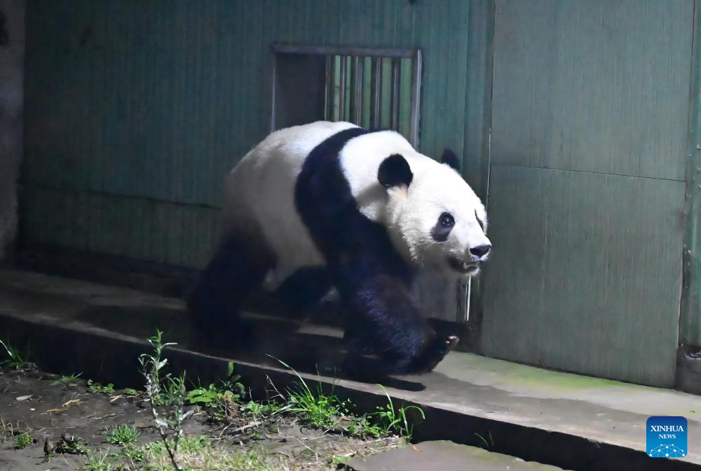 The pair, Xiao Xiao and Lei Lei, arrived at Chengdu in southwest China's Sichuan Province at 1 a.m., before they were sent to the Ya'an base of China Conservation and Research Center for the Giant Panda, where they will be quarantined.