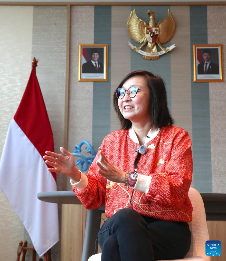 Indonesian Deputy Minister of Creative Economy Irene Umar, who also serves as chairperson of the National Chinese New Year Organizing Committee, speaks during an interview with Xinhua in Jakarta, Indonesia, Feb. 13, 2026. (Xinhua/Cen Yunpeng)