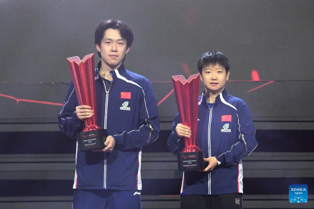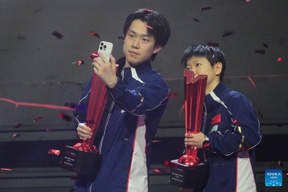 SINGAPORE, March 1 (Xinhua) -- China's Sun Yingsha and Wang Chuqin captured the women's and men's singles titles respectively at the WTT Singapore Smash on Sunday.