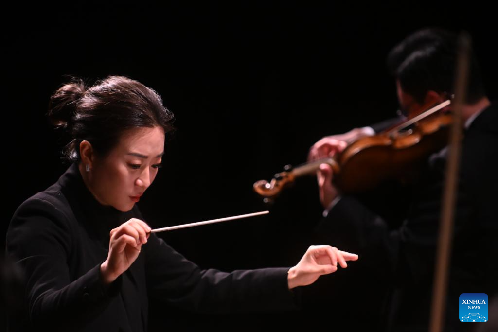 Jing Huan, principal conductor of the China National Symphony Orchestra, performs in a concert celebrating the China-Brazil Cultural Year in Natal, Brazil, April 9, 2026. (Photo by Lucio Tavora/Xinhua)