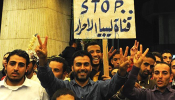 Libyans demonstrate in Tripoli against using firearms for celebration