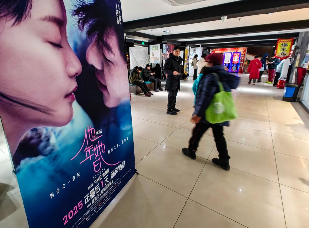 2025年12月31日,观众从北京广安门电影院的一幅电影海报旁走过(手机照片)。新华社记者 陈晔华 摄