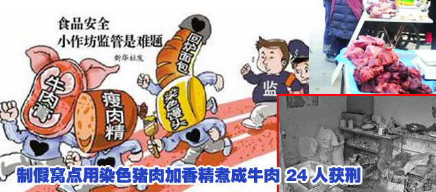 制假窩點(diǎn)用染色豬肉加香精煮成牛肉 24人獲刑
