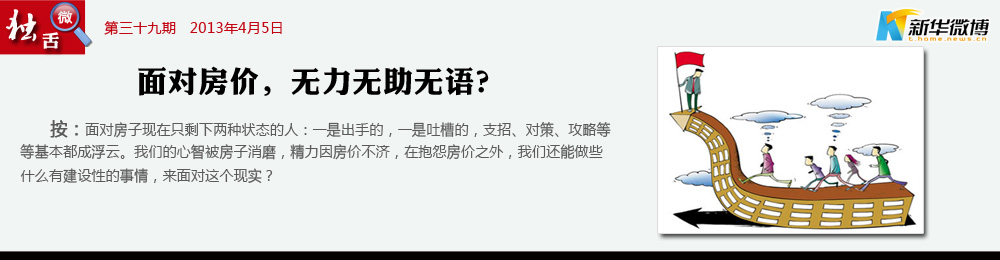 【當“房”已成往事】 房事不要再提,政策已多風雨,縱然現(xiàn)在買不起國五條后更買不起。真的要離了再娶,讓明天好好繼續(xù),你就不要再苦苦追問家庭信息。房價他是個難題,讓人目眩神迷,限價房或許可以廉租房卻太不容易。權(quán)力他不曾離去,房價就漲在那里,我對家仍有愛意,限購讓我無能為力。