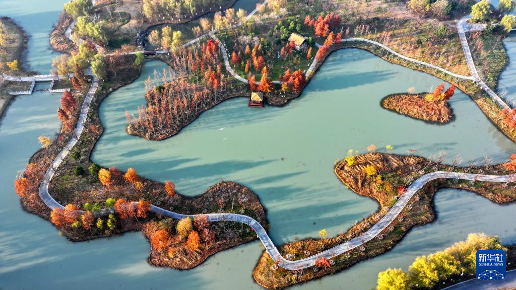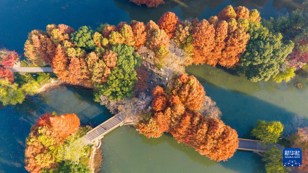 12月7日拍摄的江苏省昆山市景枫公园冬景(无人机照片)。