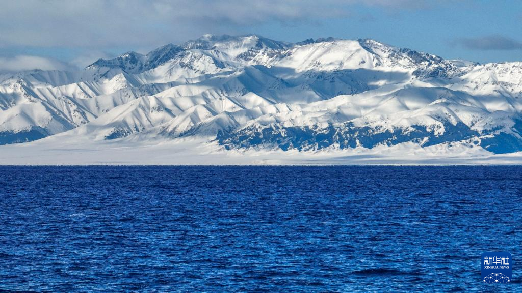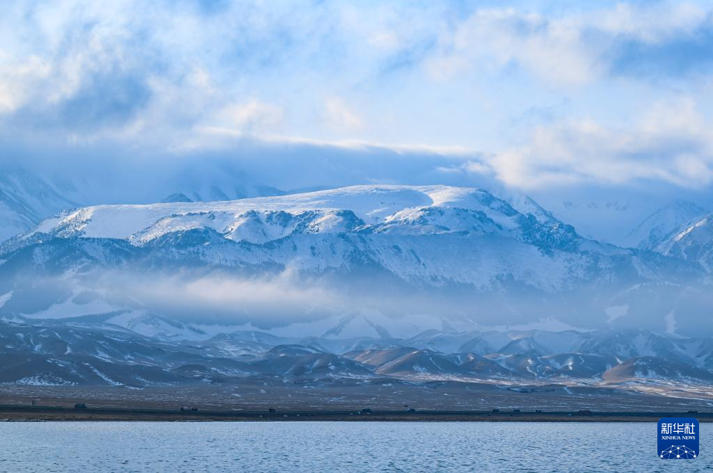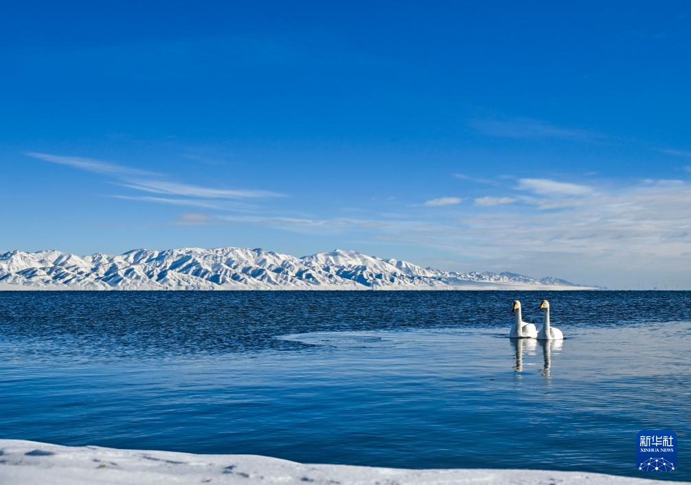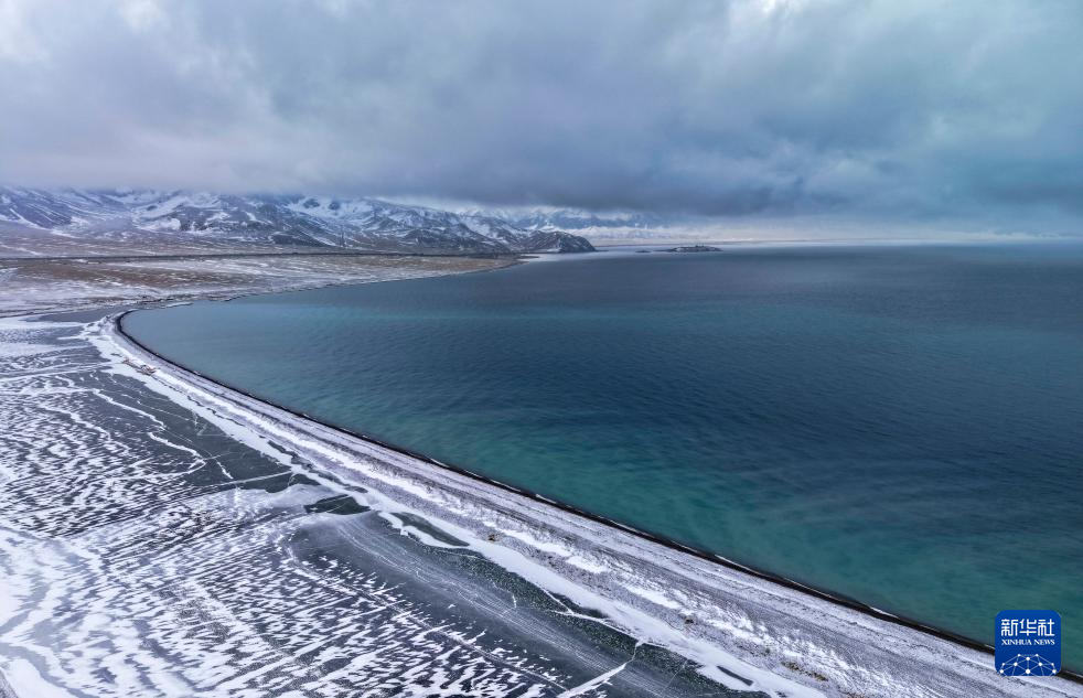 12月16日拍摄的赛里木湖和雪山(无人机照片)。