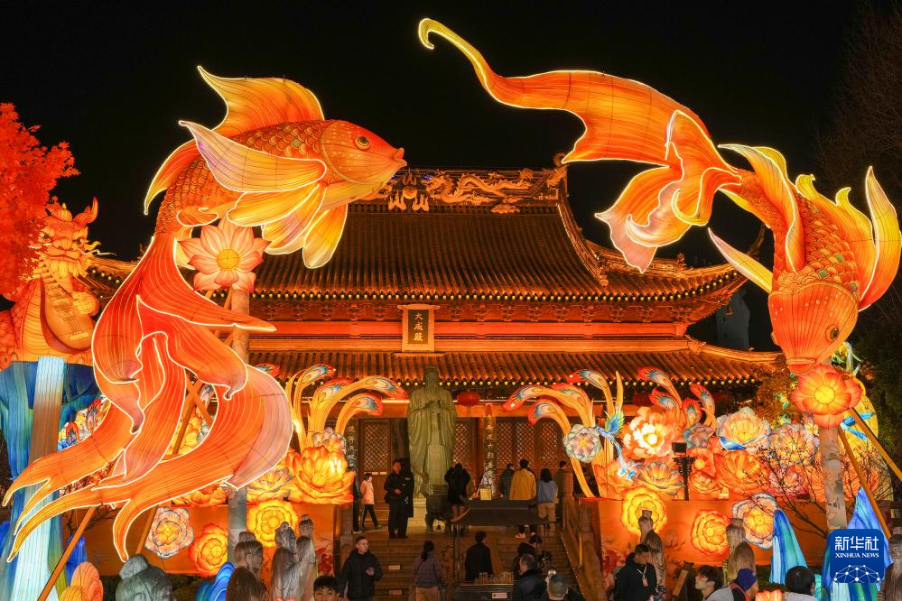 2026新年即将到来,南京市秦淮区夫子庙大成殿景点的灯彩灯组陆续点亮,为市民游客献上视觉盛宴。