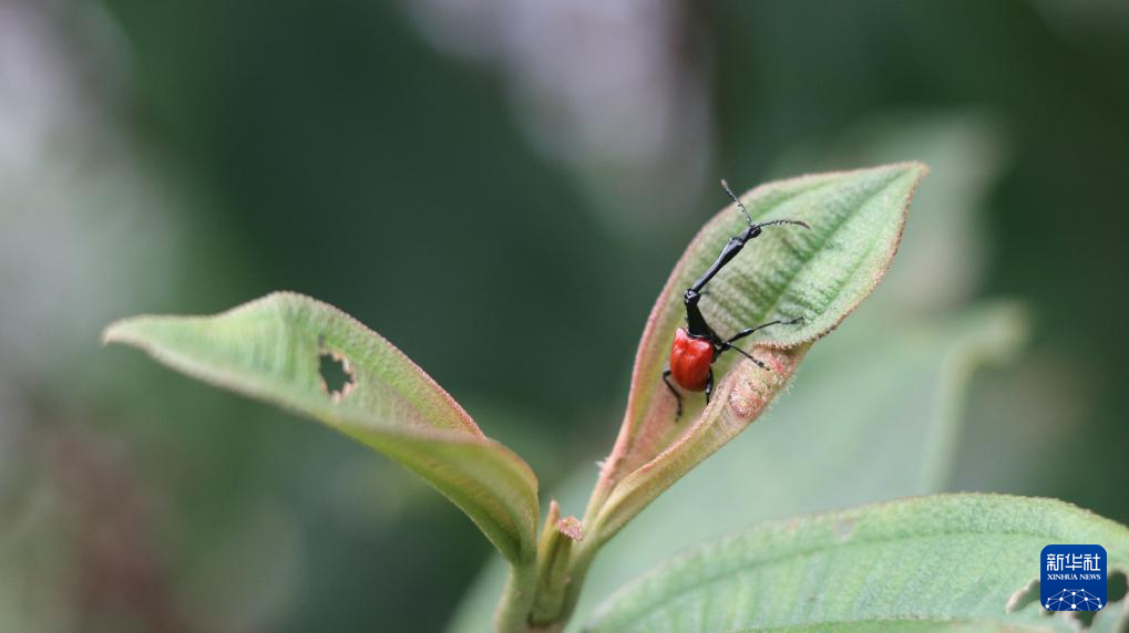 这是3月19日在马达加斯加菲亚纳兰楚阿省拉努马法纳国家公园拍摄的长颈鹿象鼻虫。