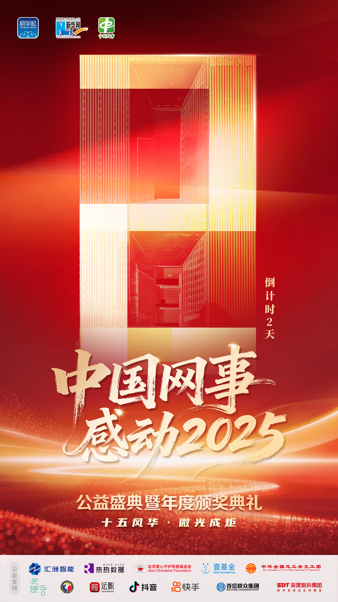 新华网北京1月26日电(记者高海英)十五风华,微光成炬。“中国网事·感动2025”公益盛典暨年度颁奖典礼将于2026年1月28日在北京国家金融信息大厦温情启幕,届时将揭晓“中国网事·感动2025”十大年度网络人物。