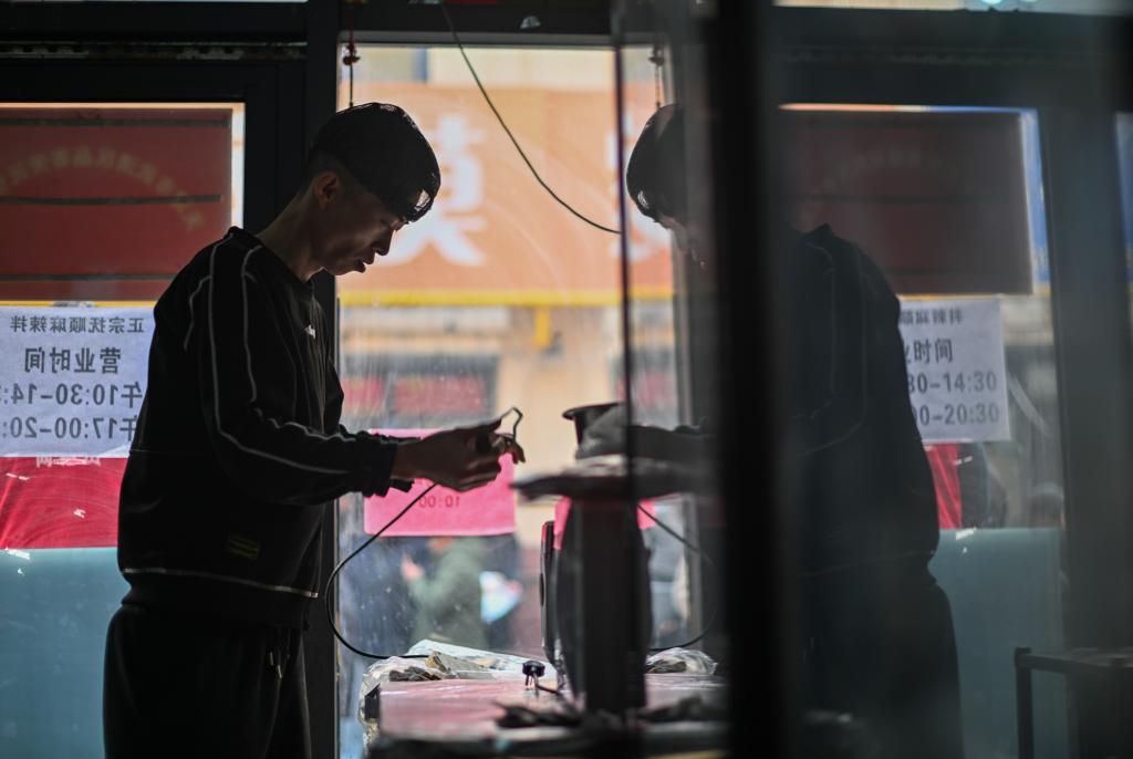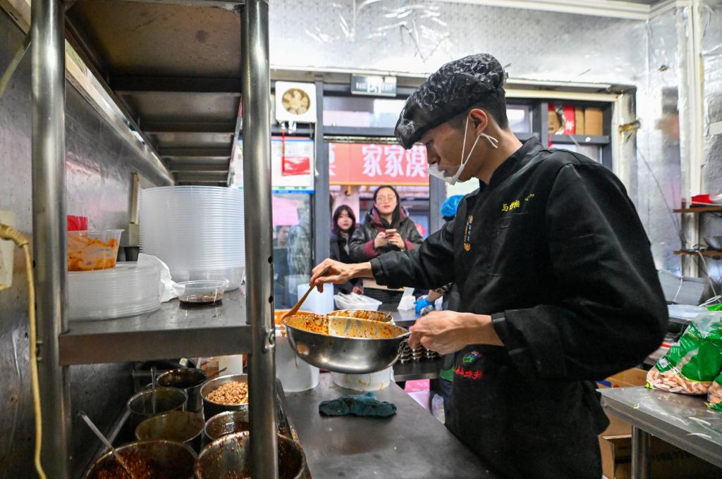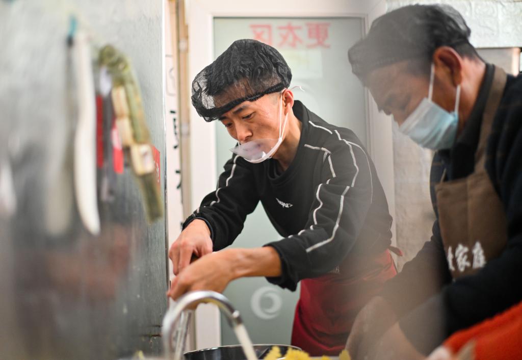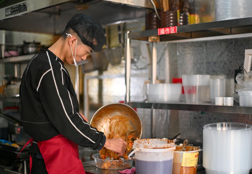 赵磊在店铺后厨忙碌(3月3日摄)。新华社记者 赵子硕 摄