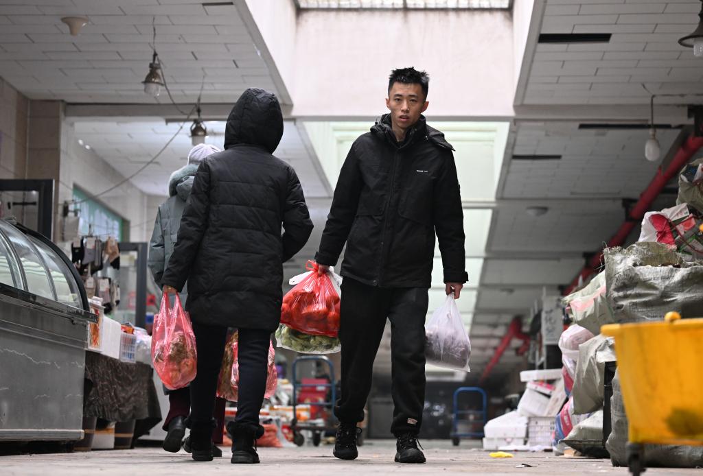 赵磊在菜市场采购当天所用的食材(3月3日摄)。新华社记者 赵子硕 摄