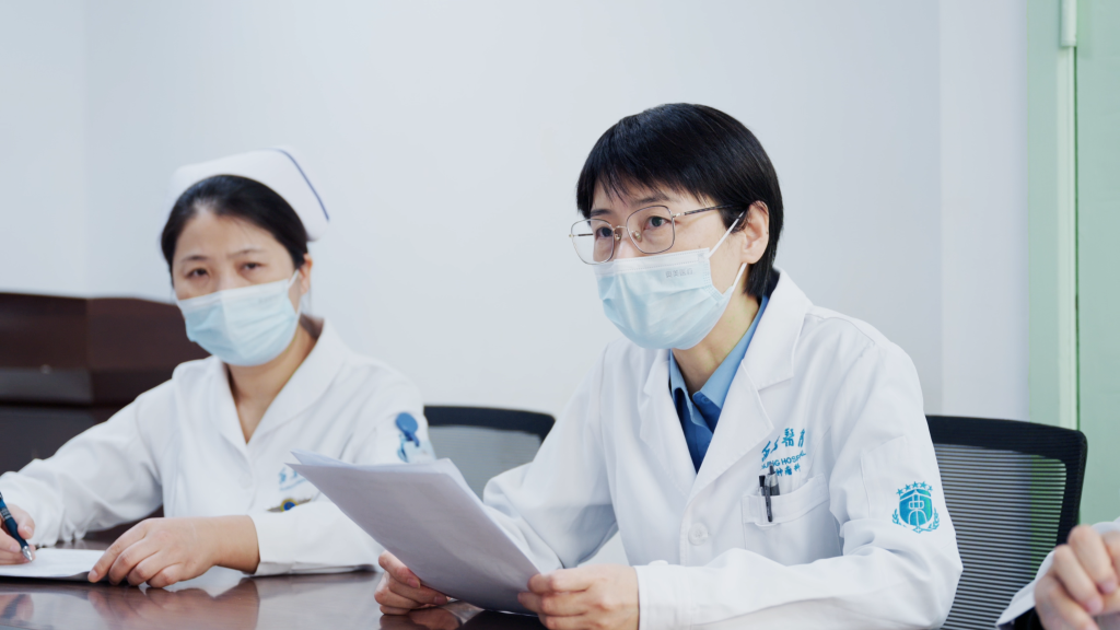 空军军医大学西京医院肿瘤科主任医师张红梅正在进行病例讨论。新华社发
