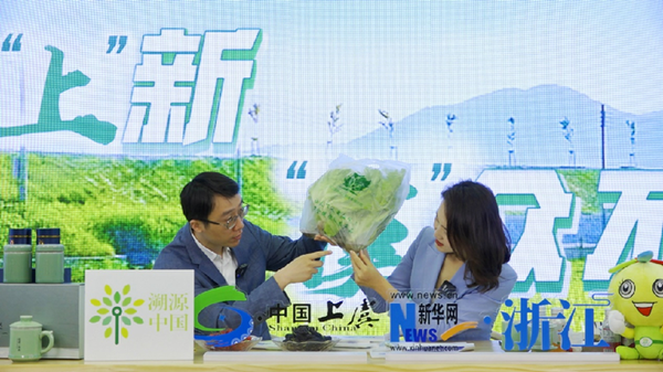 現場,紹興市上虞區副區長周尊隆用關鍵詞推介上虞:“最早建縣”“曹娥”“祝英臺”“產糧大縣”“四季仙果”“孝德文化之鄉”“綜合實力百強區”……一個鐘靈毓秀、朝氣蓬勃的上虞躍然話間。主持人品嘗上虞:本地大米、覺農翠茗茶、高山櫻桃、桑葚、活體蔬菜……一個民安物阜、有滋有味的上虞展現舌尖。場外主播則探秘上虞:90后新農人、科技大棚、無土栽培……一個創新智慧、數字興城的上虞閃爍田間。
