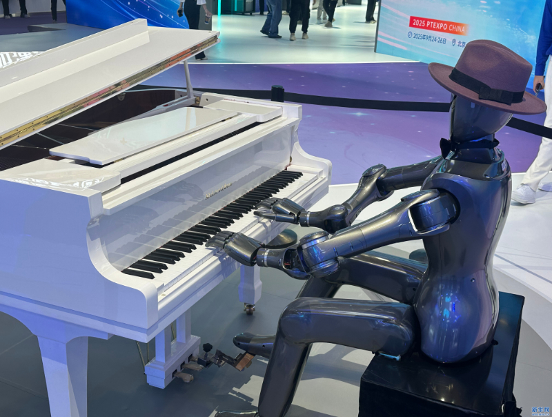 中国电信展区弹钢琴的机器人