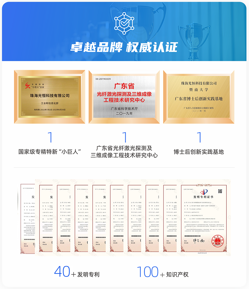 光恒科技成立于2017年,是国家专精特新重点“小巨人"企业,中国气象服务协会低空经济专业委员会成员单位、国家高新技术企业、广东省专精特新中小企业,获得ISO质量管理体系认证。公司深耕激光雷达行业多年,现有500多名员工,100多名专业研发人员,核心成员拥有十余年激光雷达研发经验;公司建有广东省光纤激光探测及三维成像工程技术研究中心和广东省博士后创新实践基地,在激光器件、激光探测、激光通信等应用行业拥有卓越的竞争力。