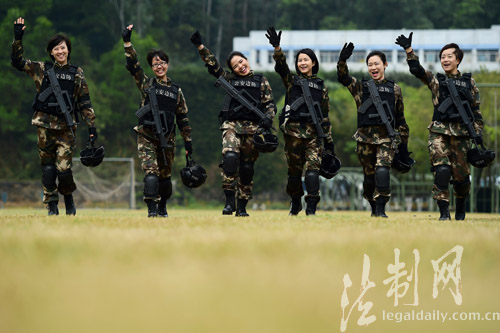 ????“干媽,我太想你了!”“隊長,我要給你個擁抱!”“我也要來個熊抱!”在深圳銀湖山下的邊防警營,記者現場看到,陳偉紅所到之處皆有掌聲,戰士們熱情的上前打招呼、話家常、送祝福。特別是在訓練場,一支六人組成的“霸王花”小分隊格外搶眼,手握九五式鋼槍,腳穿新式防爆靴,個個全副武裝、英姿颯爽,走起路來虎虎生風;細一掂量,僅身上的防彈背心、頭盔、鋼槍就有三十多斤重,均為目前的先進裝備。看到陳隊長到來,霸王花們又變成了小姑娘,紛紛涌向老大姐,拉家常、話思念?!拔覀兌际谴蠼愕耐降?!”女中尉小劉說。作戰訓練科賴紹坤科長介紹,該支隊作為全國公安邊防部隊的機動力量,常年擔負多項緝私、緝毒、救援、處突任務;而該支隊平日里,這些女干部主要分布在各機關業務科室,但是只要任務需要,她們都將奔赴第一現場;所以平時的訓練同樣嚴格;“女干部和男干部一樣,無論在哪個崗位,每個季度都會組織進行體能、技能考核!”(廖鍵)