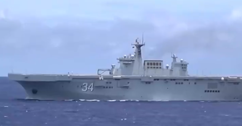 湖北舰,舷号34,人民海军075型两栖攻击舰。湖北舰到底有多大?湖北舰舰体高度超15层楼,甲板面积抵得上20个标准篮球场,可搭载多型两栖装备。当记者与湖北舰“同框”,考眼力的时候到了!快找找记者在哪儿。