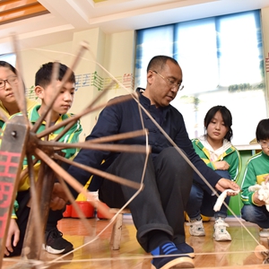 4月7日,威縣土布紡織技藝傳承人高慶海在威縣第四小學向學生演示老粗布紡織技藝。近年來,河北省邢臺市威縣積極開展“非遺傳承進校園”活動,將當地特色非遺項目引入學校課堂,讓學生近距離感受民間傳統技藝的魅力,促進非遺文化的保護和傳承。新華社記者 朱旭東 攝