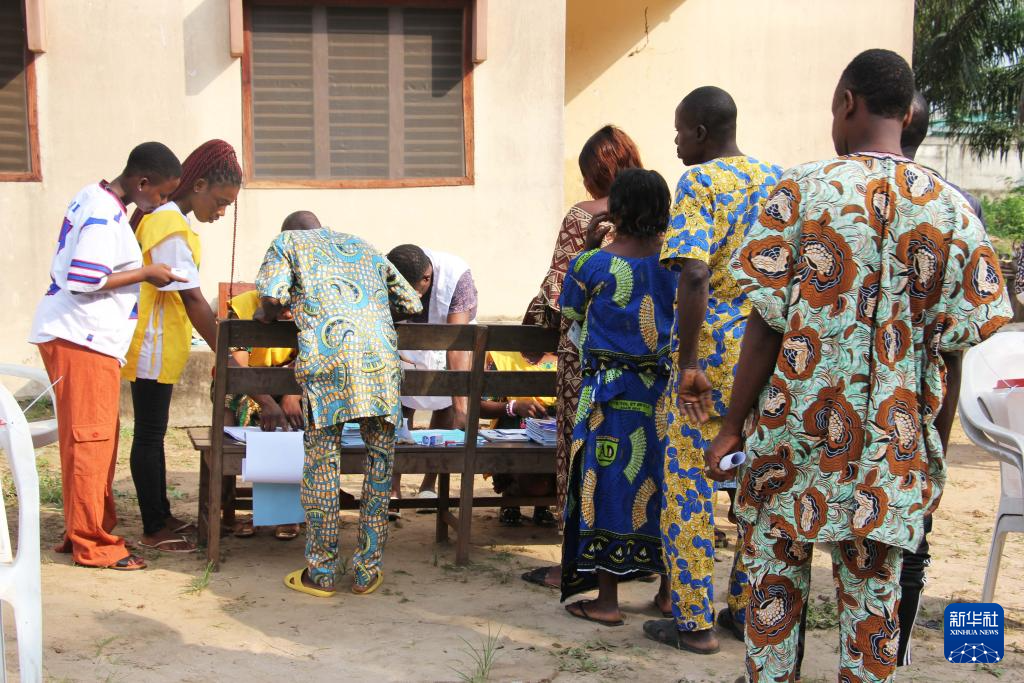 1月11日,在贝宁维达市一处投票点,选民参加投票。