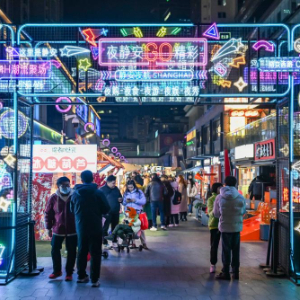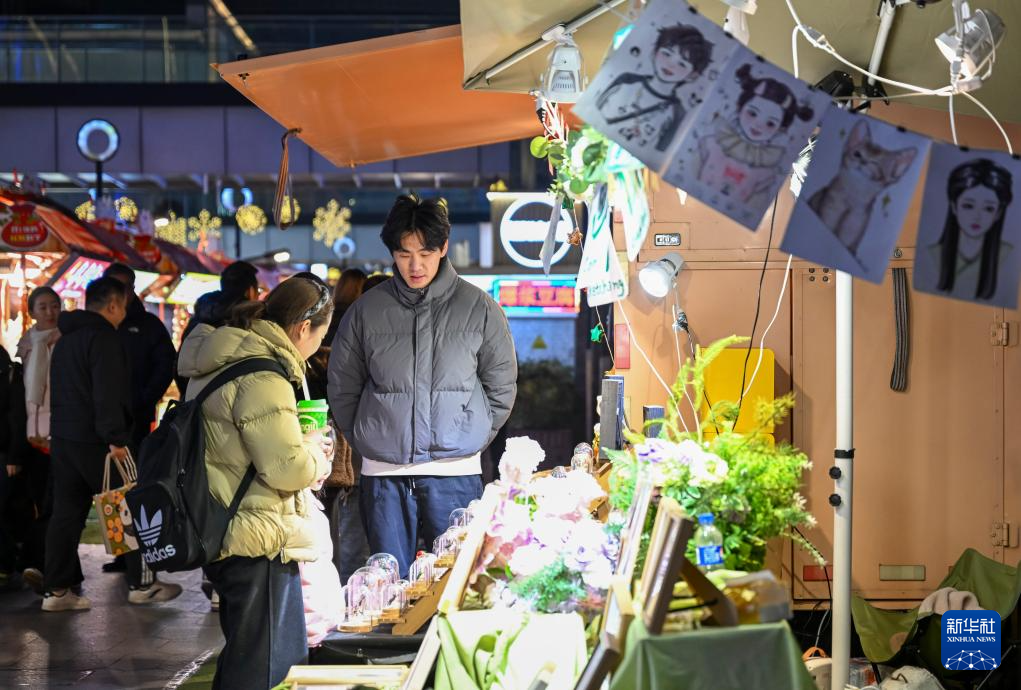 这是1月7日在上海市静安区吴江路拍摄的夜间市集现场。