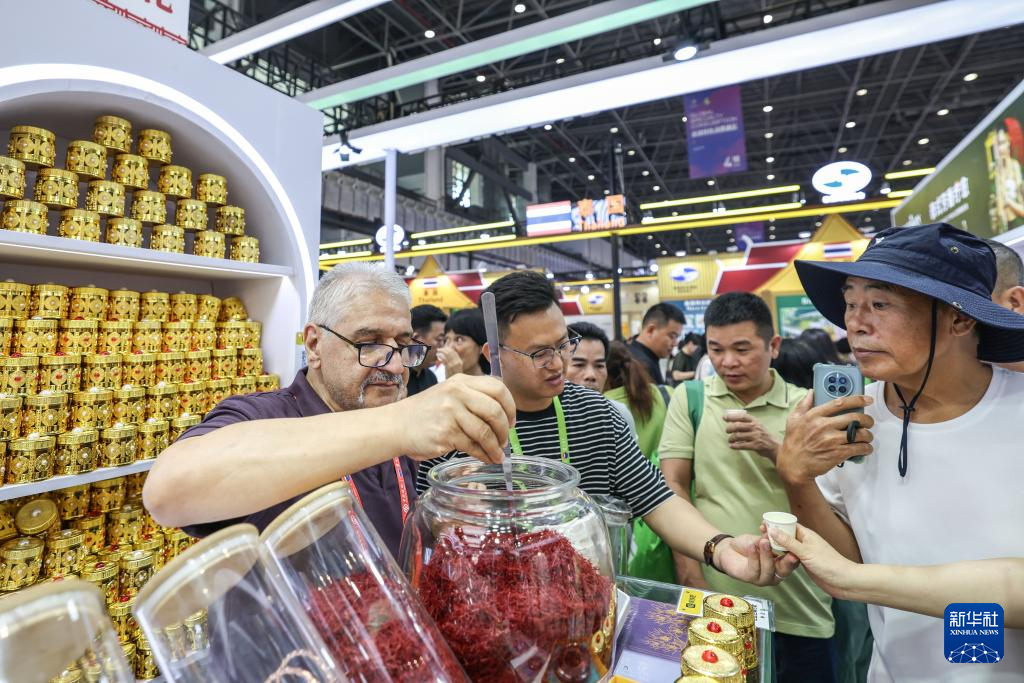 4月15日,观众在第六届消博会现场了解伊朗产品。