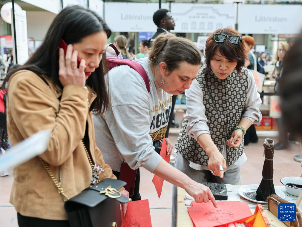 4月17日,在法国巴黎,人们在巴黎图书节中国展台参观。