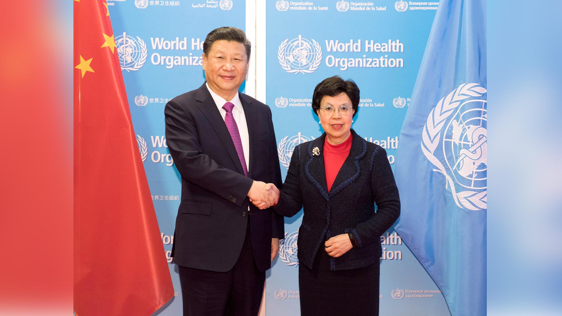 1月18日,國家主席習近平在瑞士日內瓦訪問世界衛生組織并會見陳馮富珍總干事。 新華社記者 吳曉凌 攝2017-01-19