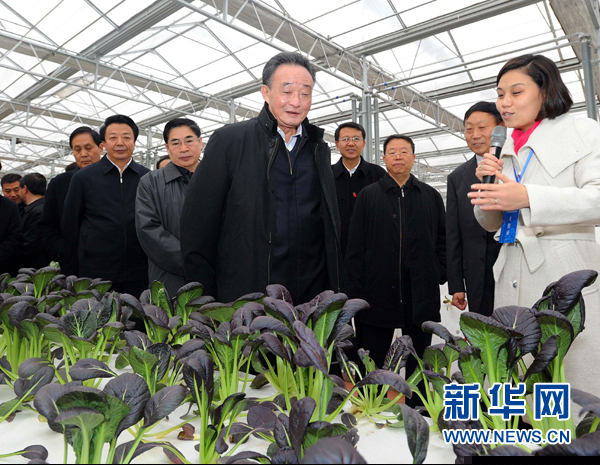 ??? 11月19日至23日,全國(guó)人大常委會(huì)委員長(zhǎng)吳邦國(guó)在山西調(diào)研。這是11月22日,吳邦國(guó)在華通現(xiàn)代科技農(nóng)業(yè)示范園察看農(nóng)作物長(zhǎng)勢(shì)情況。 新華社記者 李濤 攝