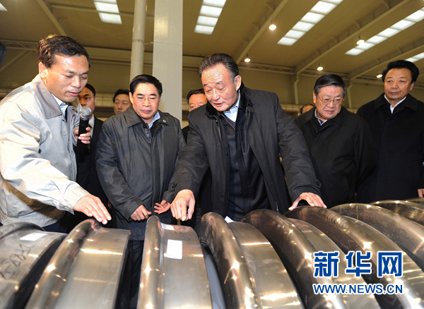 11月19日至23日,吳邦國(guó)先后來到運(yùn)城、太原、晉中等地,就貫徹落實(shí)黨的十八大精神進(jìn)行調(diào)研。在太原重工集團(tuán)高速輪對(duì)國(guó)產(chǎn)化項(xiàng)目現(xiàn)場(chǎng),他詳細(xì)了解工藝流程和技術(shù)指標(biāo),強(qiáng)調(diào)要發(fā)揮企業(yè)作為科技創(chuàng)新主體的作用,瞄準(zhǔn)世界同行業(yè)先進(jìn)水平,加大自主創(chuàng)新力度。在太原鋼鐵集團(tuán)4350立方米高爐前,他關(guān)切詢問水、熱、煤氣、爐渣回收利用情況,稱贊公司發(fā)展循環(huán)經(jīng)濟(jì)不僅有利于保護(hù)生態(tài)環(huán)境,也取得了良好經(jīng)濟(jì)效益。在漾泉藍(lán)焰煤層氣開發(fā)公司,他同工程技術(shù)人員探討煤層氣開發(fā)的關(guān)鍵技術(shù)和應(yīng)用前景,勉勵(lì)大家為發(fā)展清潔能源、提高能源利用效率作貢獻(xiàn)。在華通現(xiàn)代科技農(nóng)業(yè)示范園、粟海集團(tuán),他希望企業(yè)發(fā)揮龍頭和輻射作用,抓好農(nóng)戶基地建設(shè),帶動(dòng)農(nóng)民增收致富。在山西省博物院,他指出,山西歷史悠久、文化底蘊(yùn)深厚,發(fā)展旅游業(yè)條件得天獨(dú)厚,要深挖發(fā)展?jié)摿Γ蛟炀仿糜尉€路,帶動(dòng)相關(guān)服務(wù)業(yè)發(fā)展,將旅游資源優(yōu)勢(shì)轉(zhuǎn)化為經(jīng)濟(jì)優(yōu)勢(shì),造福更多百姓。在太原市錦繡苑社區(qū),他同基層干部群眾親切交談,了解他們所想所盼,并祝愿大家日子越過越紅火。在昔陽縣大寨村,他登上虎頭山、來到展覽館、走進(jìn)村民家,實(shí)地察看大寨發(fā)生的嶄新變化,了解大寨歷史和發(fā)展規(guī)劃,希望大寨人民繼承大寨優(yōu)良傳統(tǒng),發(fā)揚(yáng)自力更生、艱苦奮斗精神,因地制宜發(fā)展現(xiàn)代農(nóng)業(yè),在社會(huì)主義新農(nóng)村建設(shè)中譜寫輝煌。