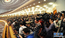 2012年3月4日上午11時(shí),十一屆全國人大五次會議在人民大會堂三樓金色大廳舉行新聞發(fā)布會,由大會發(fā)言人就會議議程和人大工作相關(guān)的問題回答中外記者的提問。